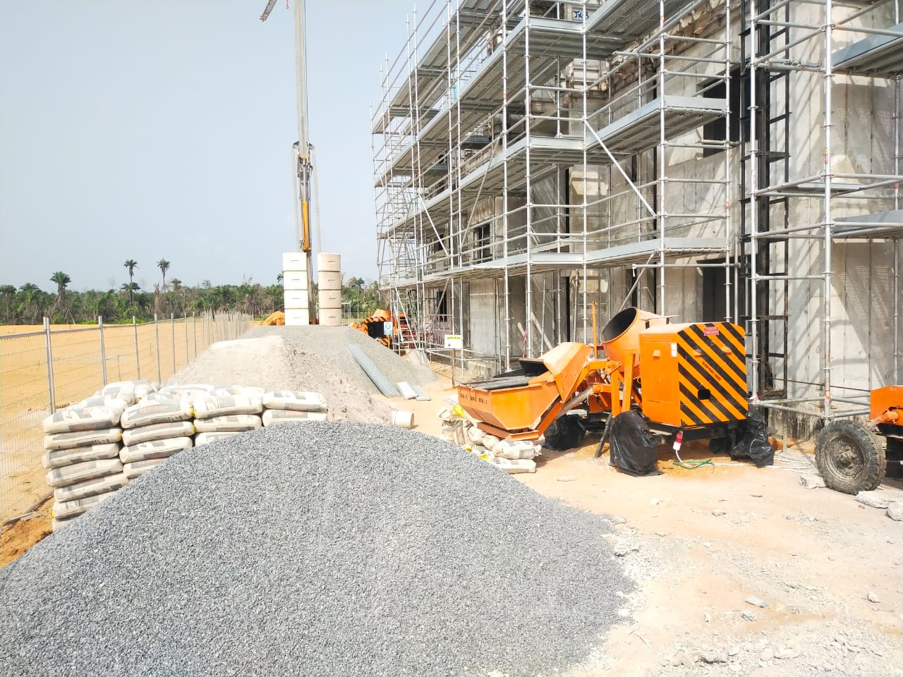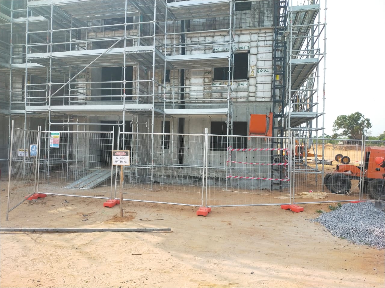 We are committed to implementing one of our core values, “Safety First,” as we progress to higher levels. The scaffolding keeps the workers safe as they move from one floor to the next until they reach the top floor.